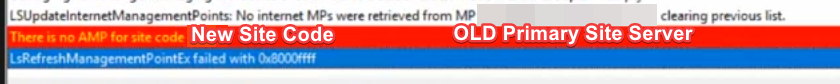 While its not as bad as my last issue with the _same_ error code, the thumbnail picture is still justified here. There’re already some blogs about this error showing up in ClientIDManagerStartup.log and LocationServices.log constantly, for example here and here. However, the issue I was looking at today had an old root cause, really old. Usually I still go for the old adm template when migrating CCM Agents from Site A to Site B. These are located in <ConfigMgrInstallationFolder>\Tools\ConfigMgrADMTemplates. There, configmgrassignment.adm sets GPRequestedSiteAssigmentCode in HKLM\SOFTWARE\Microsoft\SMS\Mobile Client to be the new site code, as Prajwal points out. I wrote the following points to check and verified them with the customer.